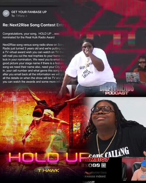 - THawkI am Indie Gospel Hip Hop artist T Hawk who is a New Jersey Native that loves all genres of music with a current catalog of music out that is Hip Hop/Gospel/R&B! My passion is creating, performing & writing music for all ages & nationalities worldwide to enjoy & glorify/ lift up the name of GOD! With some accolades that include being a 4x’s returning contestant for the McDonalds Gospelfest with a Live Performance at Prudential Center in Newark,NJ; 3x’s performer for the stage of Concert Crave; Winner Circle contestant in MOSSFEST Artist Showcase; appeared in front of A&R’s with performances for Coast2Coast Live & Direct to Exec; involved in an upcoming play by Alex Howze of Christian Fellowship Center named “All we do is Win”; was a winner in the Musizislife event hosted by Shade45 own Da Inphamus Amadeuz. I am the Host of a rising Podcast named “Work In Progress w/T Hawk” available now on IHeartRadio, Spotify, Amazon & Apple Podcasts; is also the Host of rising TV Broadcast “Hawks Vision: With the Birds Eye View” airing on Optimum & Cablevision public access Ch 19 & that’s just to name a few!Everything on this profile is a piece of artistry by rising Indie Music Artist/Actress/Singer/Songwriter T Hawkhttps://www.iheart.com/podcast/269-work-in-progress-w-t-hawk-123453566?cmp=ios_share&sc=ios_social_share&pr=false&autoplay=true"Hold Up" by T HawkPerforming “Always With You” live at Creative Philly by artist T HawkT HAWK “Life’s A Breeze” VEVO music video shot by B&R Music GroupT Hawk Singleshttps://www.facebook.com/tiff.hawk.12?mibextid=LQQJ4dhttps://instagram.com/hawktiff?igshid=OGQ5ZDc2ODk2ZA==https://twitter.com/tyahawk?s=21&t=cuz0-A4PqgTPnNV2WXSY2wsongs