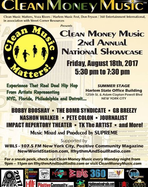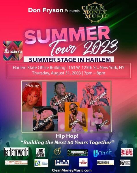 With the support of Voza Rivers, executive producer of HARLEM WEEK, Don Fryson / Clean Money Music produced shows for HARLEM WEEK, NYC Marathon, Marcus Garvey Park, Harlem Summer Stage, Central Park / Harlem Meer Festival, Uptown Night Market, Bronx Night Market, the Multicultural Festival, Summer Breeze Festival Mt. Vernon, and many other venues. In addition, Clean Money Music artists recently performed on New York's WPIX channel 11.